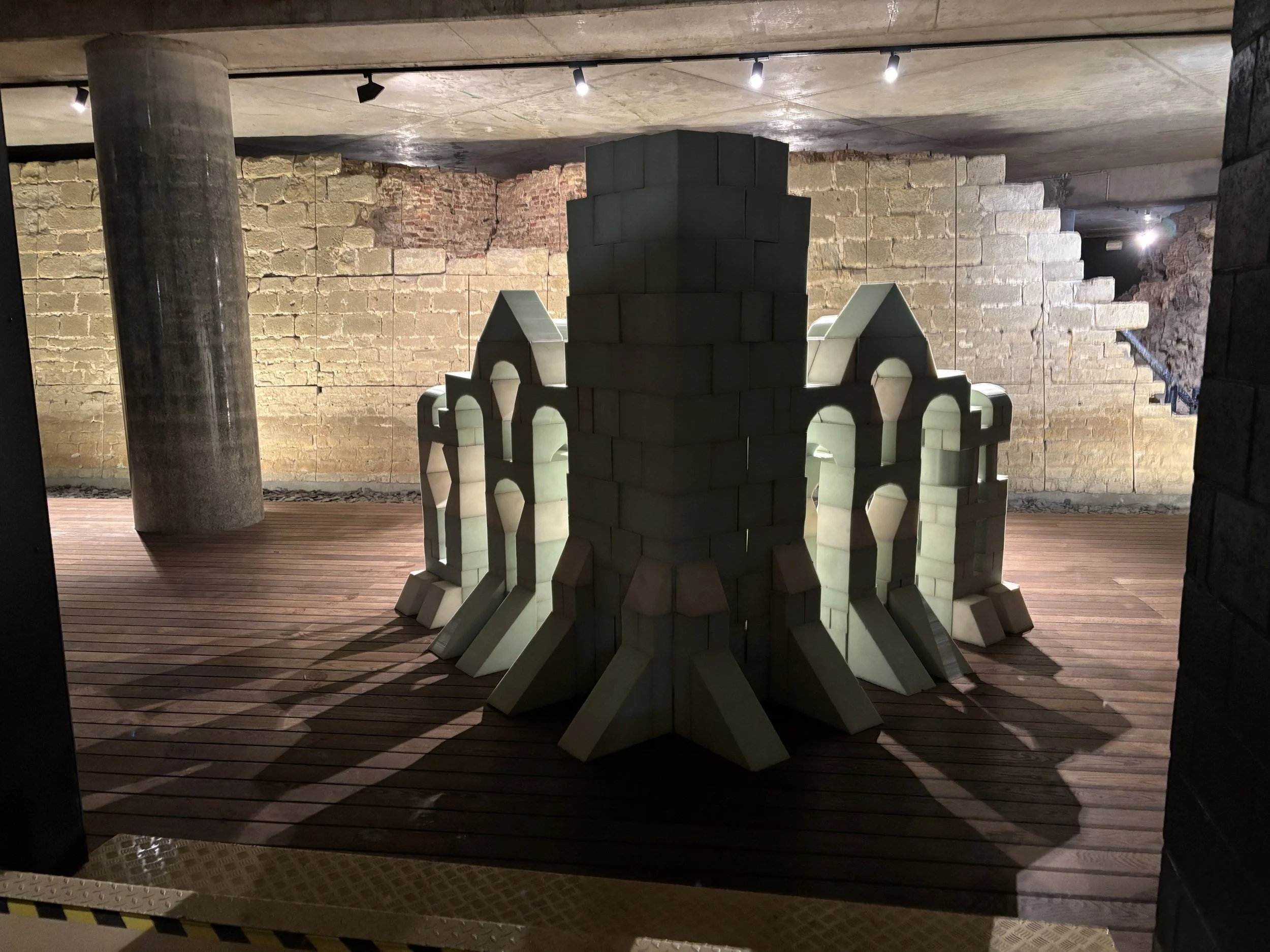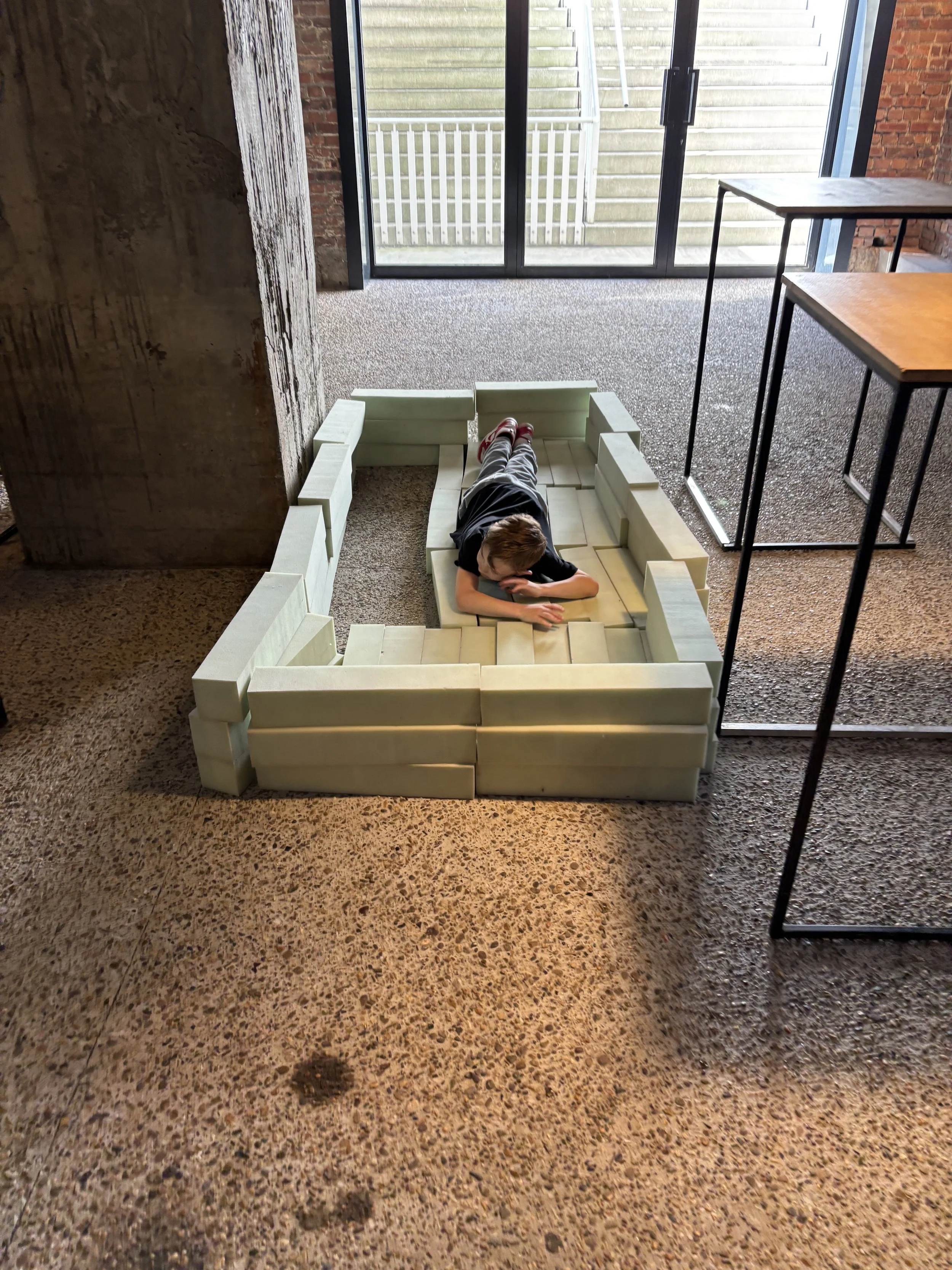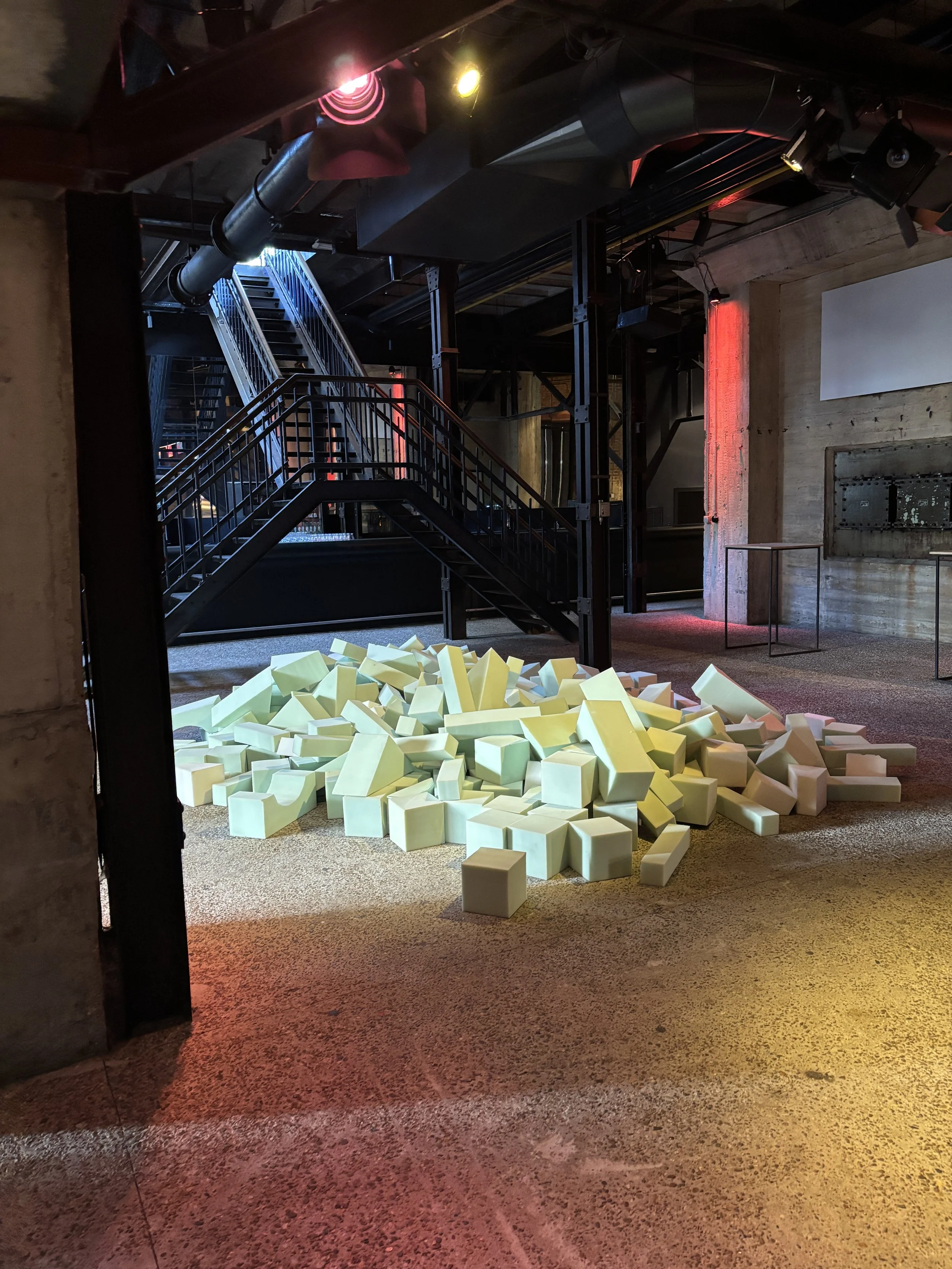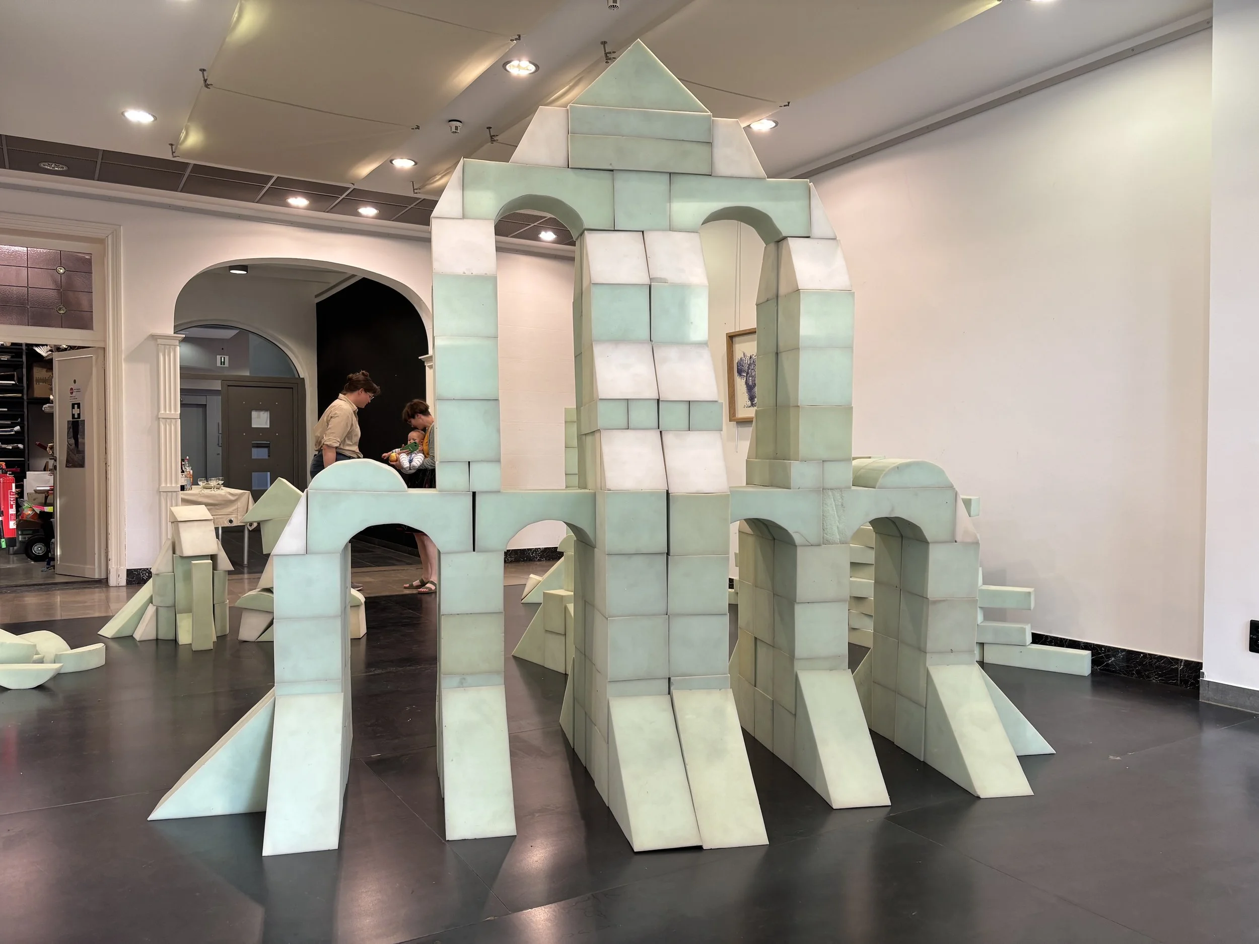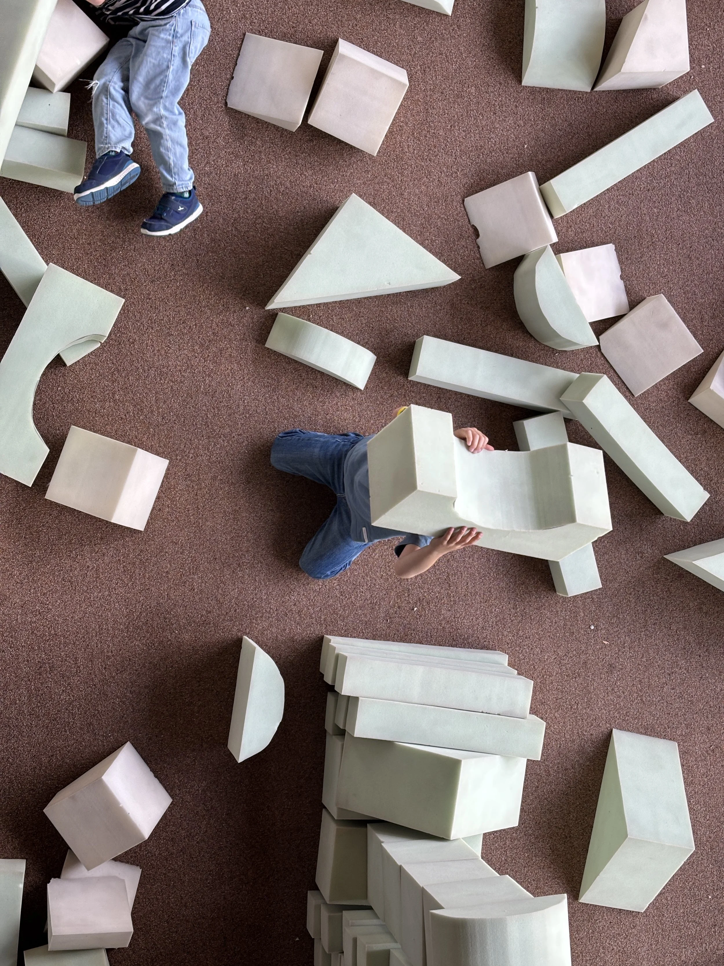 The foam blocks are abstractions of existing shapes within our towns, relating directly to the surrounding heritage. The installation is a physical method of directly relating to the site, which traditionally consists of immovable stones and protected bricks. By making light-weighted, harmless counterparts, the work functions as a carbon-copy of the original, which can then be moved, damaged and lived.